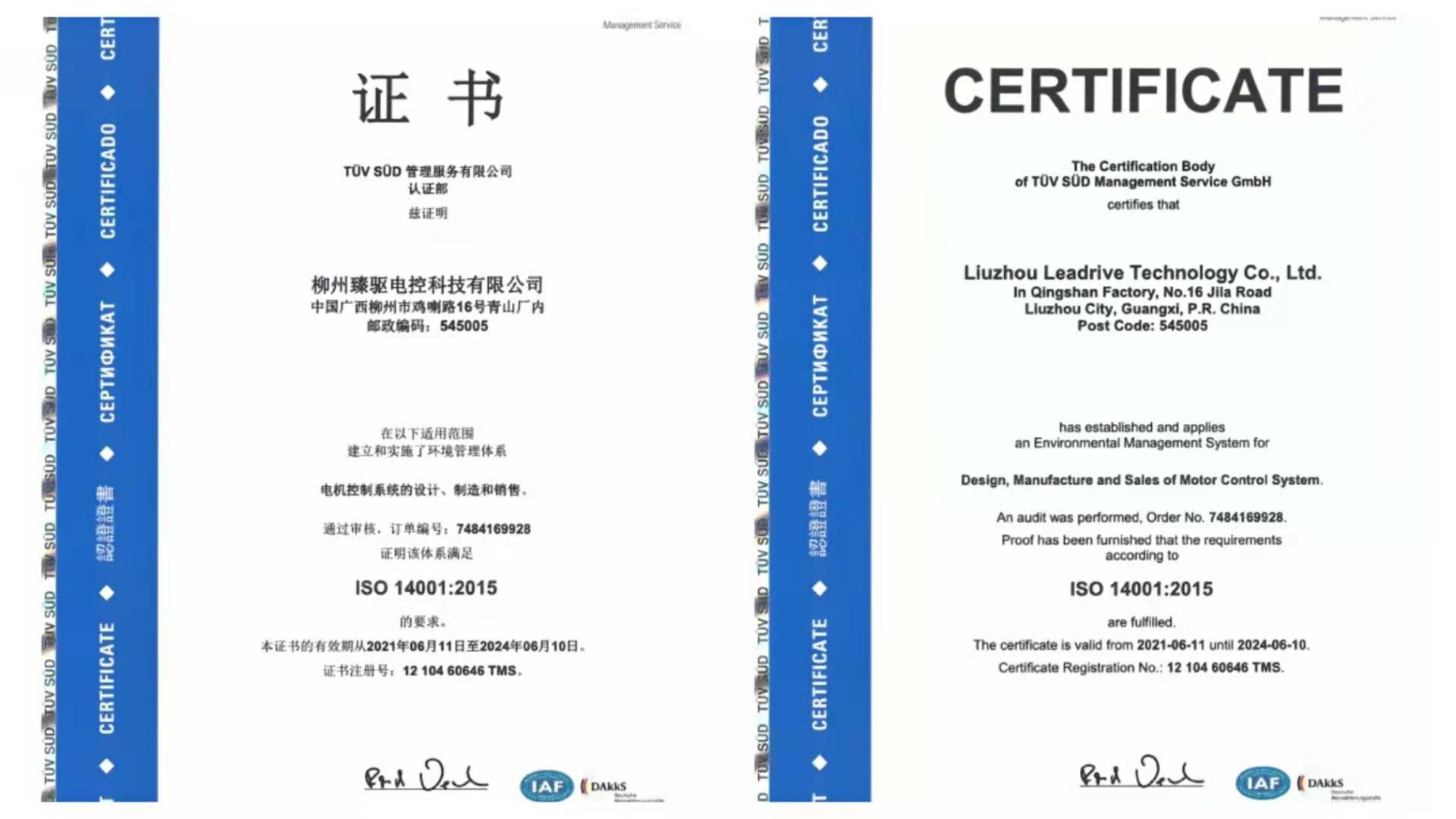 近日,臻驅科技子公司柳州臻驅獲得由TÜV南德出具的ISO 14001:2015環境管理體系認證。該認證將大大提升臻驅產品在歐洲市場的競爭力,并為進入全球一線主機廠商供應鏈體系奠定堅實基礎。