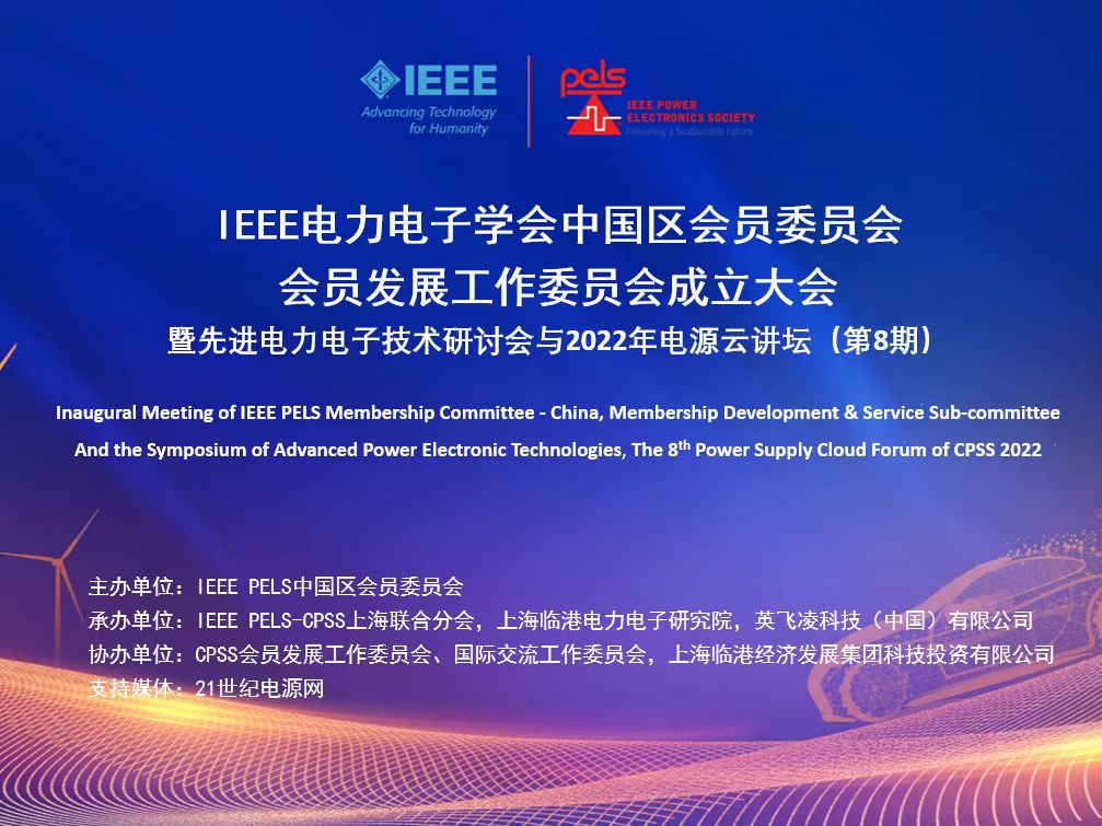 2022年9月18日,由上海臨港電力電子研究院承辦的IEEE電力電子學會中國區(qū)會員委員會,會員發(fā)展工作委員會成立大會,暨先進電力電子技術研討會與2022年電源云講壇(第8期)在上海臨港成功舉辦。