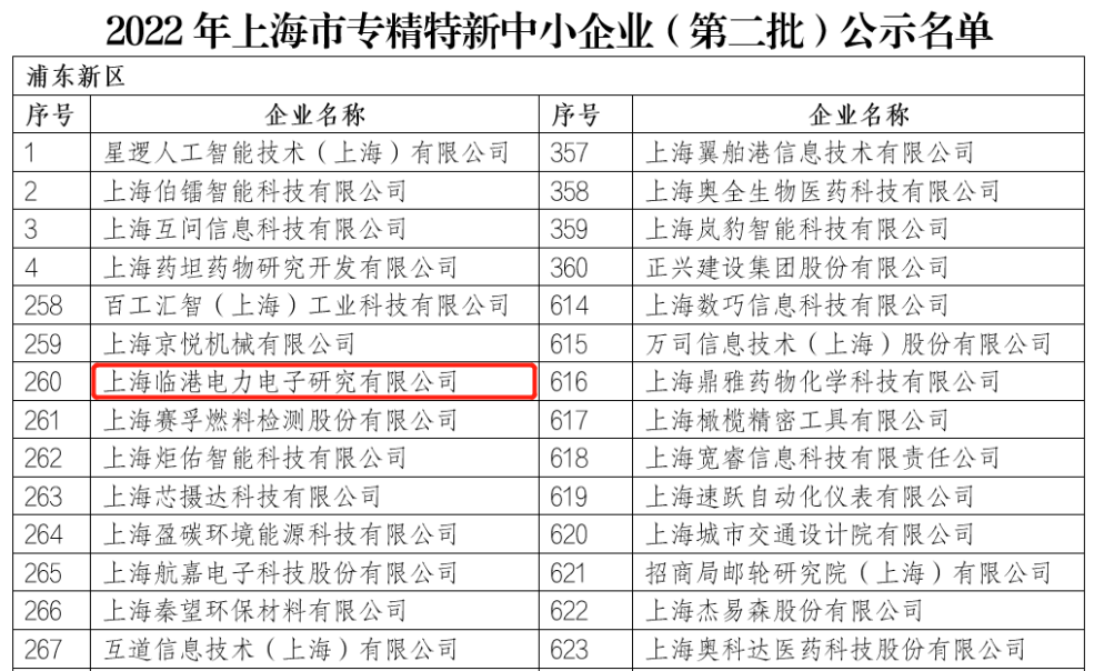 3月2日,根據《上海市優質中小企業梯度培育管理實施細則》(滬經信規范〔2022〕8號),上海臨港電力電子研究有限公司(以下簡稱“研究院”)順利通過專家評審和綜合評估,成功入選2022年度上海市第二批次“專精特新”企業。