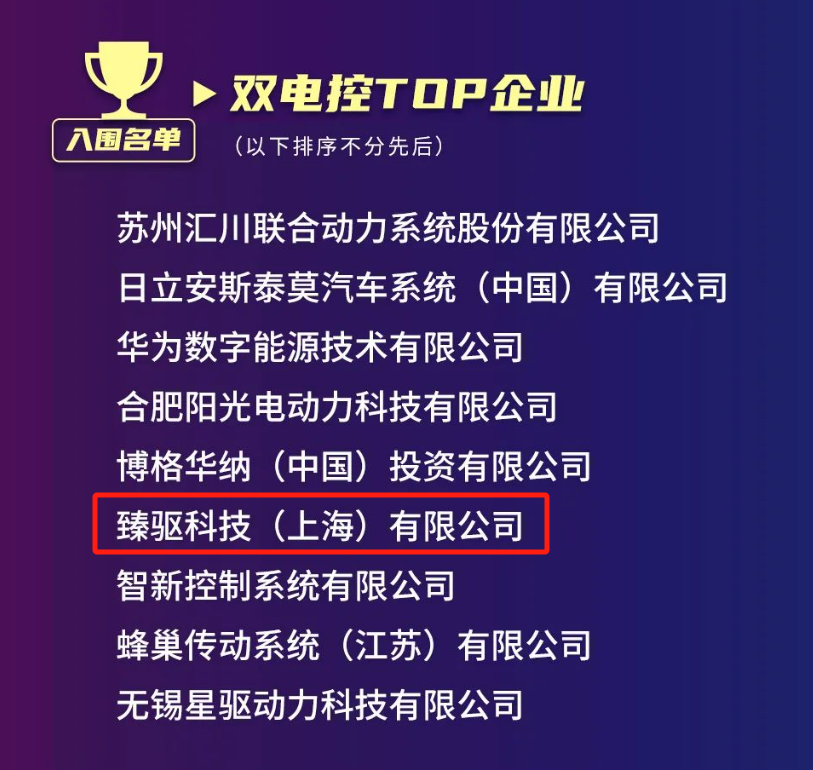 喜報 | 臻驅科技榮獲中國電驅動產業技術創新獎并入選雙電控TOP企業-臻驅科技(上海)股份有限公司